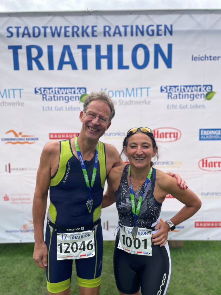 Mit Top-Platzierungen verabschiedeten sich Claudia Sdrenka und Heiner Winkelhake aus der Triathlonsaison 2025. Beim Ratinger Triathlon sicherte sich Claudia Sdrenka den ersten Platz ihrer Altersklasse W55 über 1,2km schwimmen, 60km Rad fahren und 15km laufen nach 3h:28min:34sec. Im Gesamtfeld der Frauen bedeutete das Rang 9.Heiner Winkelhake startete über die Kurzdistanz (0,8km schwimmen, 40km Rad fahren und 10km laufen) und wurde 2. der Altersklasse M65 nach 3h:04min:01sec.